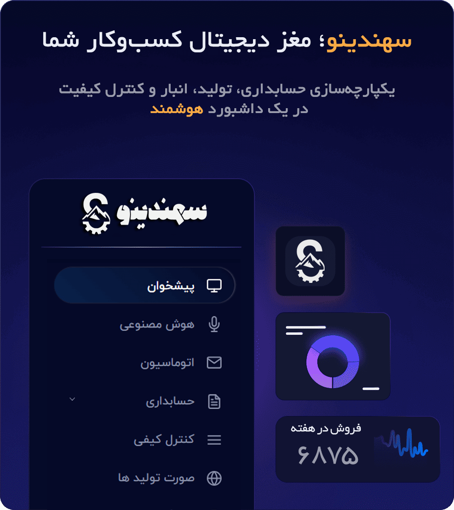 سهندینو با ماژولهای هوشمند و قابل سفارشیسازی، فرآیندهای مالی، تولید، انبار و منابع انسانی را برای هر نوع کسبوکاری ساده و یکپارچه میکند
