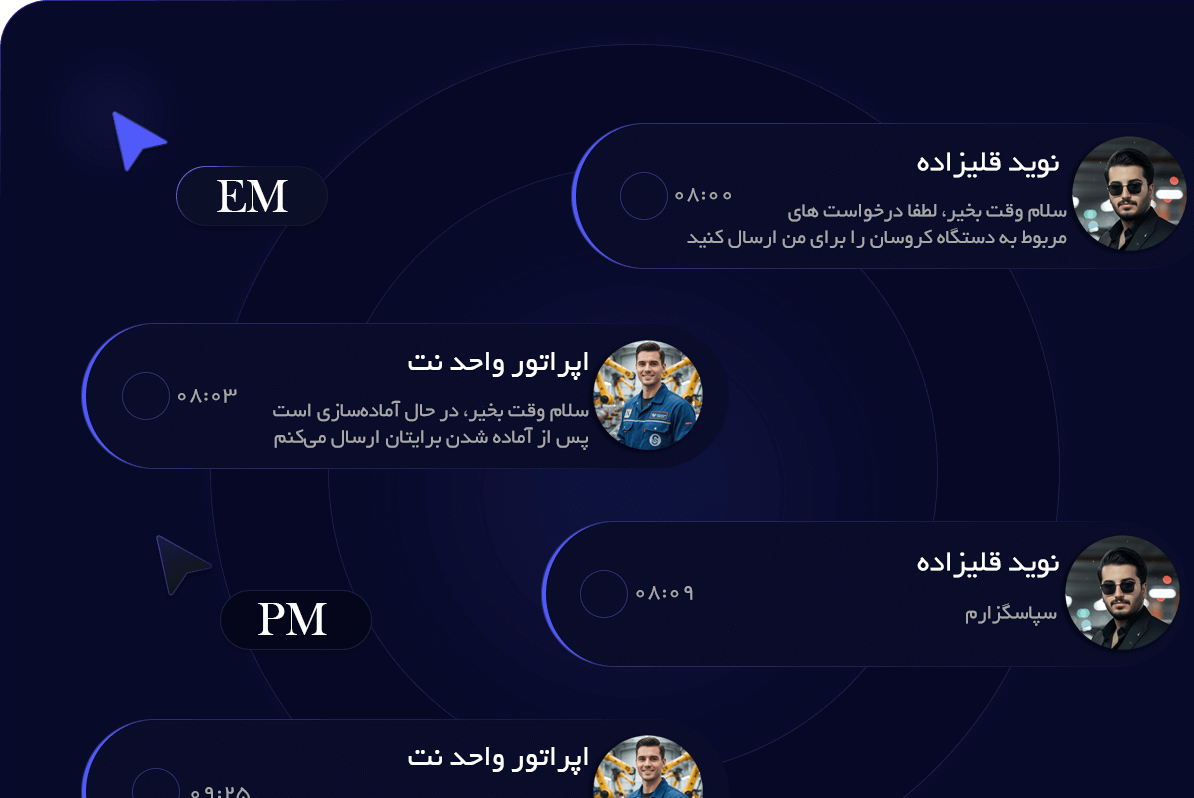 گفتگو و همکاری سریع بین اعضای تیم، مستقیم داخل نرمافزار